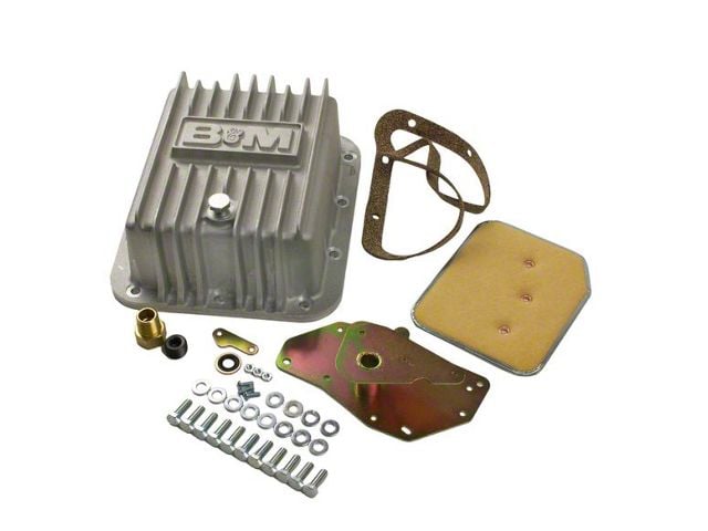Description. Our Hi-Tek deep transmission pans are constructed from A356-T6 aluminum and are cast with thick internal and external fins, adding additional strength and increased cooling properties. The deep pan design increases fluid capacity by 2-quarts over the stock O.E. steel pan. All these features combined help dissipate heat quicker netting lower transmission and fluid temperatures prolonging the life of your transmission, transmission fluid and corresponding components. Other features for this popular pan include a filter, filter extension, pan gasket and drain port with magnetic drain plug for clean and easy servicing. Also includes a 1/2 inch NPT port for "pan-fill" transmissions. Includes detailed instructions with all necessary hardware for an easy at home installation.