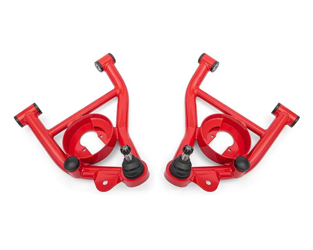 _x000D__x000D_Construction and Appearance. Constructed from heavy-duty DOM tubing with precise laser-cut and CNC-formed steel braces, these control arms ensure maximum strength and reliability. They feature greaseable, internally fluted Delrin bushings to maintain lubrication and reduce wear. Finished in a durable red powdercoat, this finish enhances corrosion resistance while delivering a clean, professional appearance.