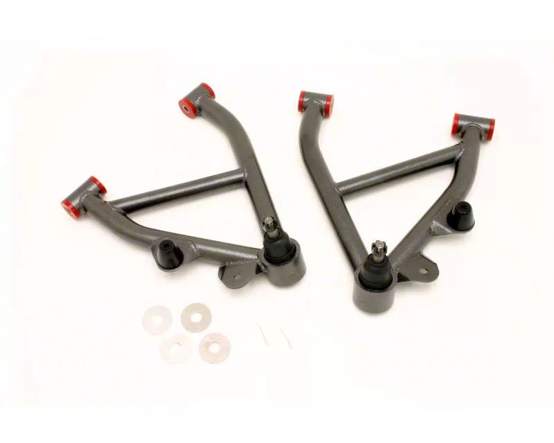 _x000D__x000D_Construction and Appearance. Manufactured from heavy-duty DOM tubing with 1.5-inch and 1.25-inch diameters and 0.095-inch wall thickness, these control arms provide exceptional strength. They come equipped with internally fluted, greasable 95-durometer polyurethane bushings that enhance responsiveness while maintaining quiet operation. The arms are finished in a durable black hammertone powdercoat for longevity and a professional look.