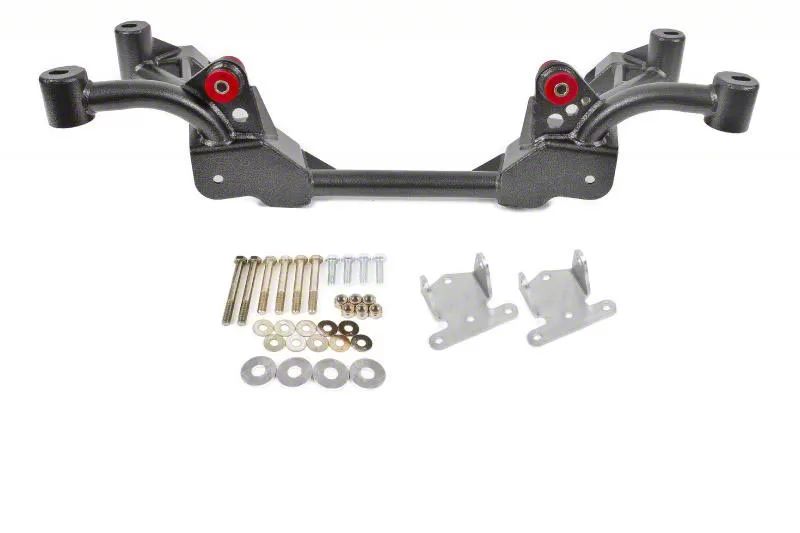Designed for street performance, drag race, and road race applications, BMR K- members drop weight and add loads of structural rigidity. BMR's unique K-member design features integrated engine mount that replace the heavy factory engine mounts. This additional weight reduction allows BMR to use larger diameter tubing and thicker mounting plates for additional strength over other available K-members. When combined with BMR's upper and lower A-arms, a weight reduction of 42 pounds is common. With other lightweight frontend parts, weight reduction of up to 100 pounds is easily achievable. This K-member works with your stock engine or you can easily swap to a traditional SBC or BBC engine with no fabrication.