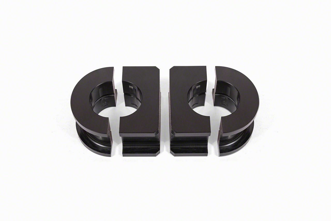 Add extra support and strength to your sway bar, and improve the level of body roll control on any of your 1 1/4-inch sway bar equipped vehicles with universal Delrin Sway Bar Bushings from BMR Suspension. BMR's Sway Bar Bushings are CNC-machined 1-1/4 Delrin for lasting strength. Most sway bars come with polyurethane bushings that can deflect with greater loads. The BMR Delrin bushings give you an effective sway bar mounting solution that works great for limiting the amount of wasted sway bar rate due to sway bar bushing deflection. BMR designed the Delrin Sway Bar Mounting Bushings to fully reduce bushing deflection. Eliminating this deflection will reduce body roll and increase handling and launch consistency. Designed for street performance, drag race, and handling applications, BMR's Delrin Sway Bar Mounting Bushings replace the polyurethane bushing assembly with CNC-machined Delrin bushings. BMR's Delrin bushings are greaseable for smooth operation and long life. BMR Suspension's SBB006 Sway Bar Bushings are available in a black Delrin finish. Installation time is about 1 hour. Proudly made in the U.S.A.! ****These parts may require modification to work properly!****