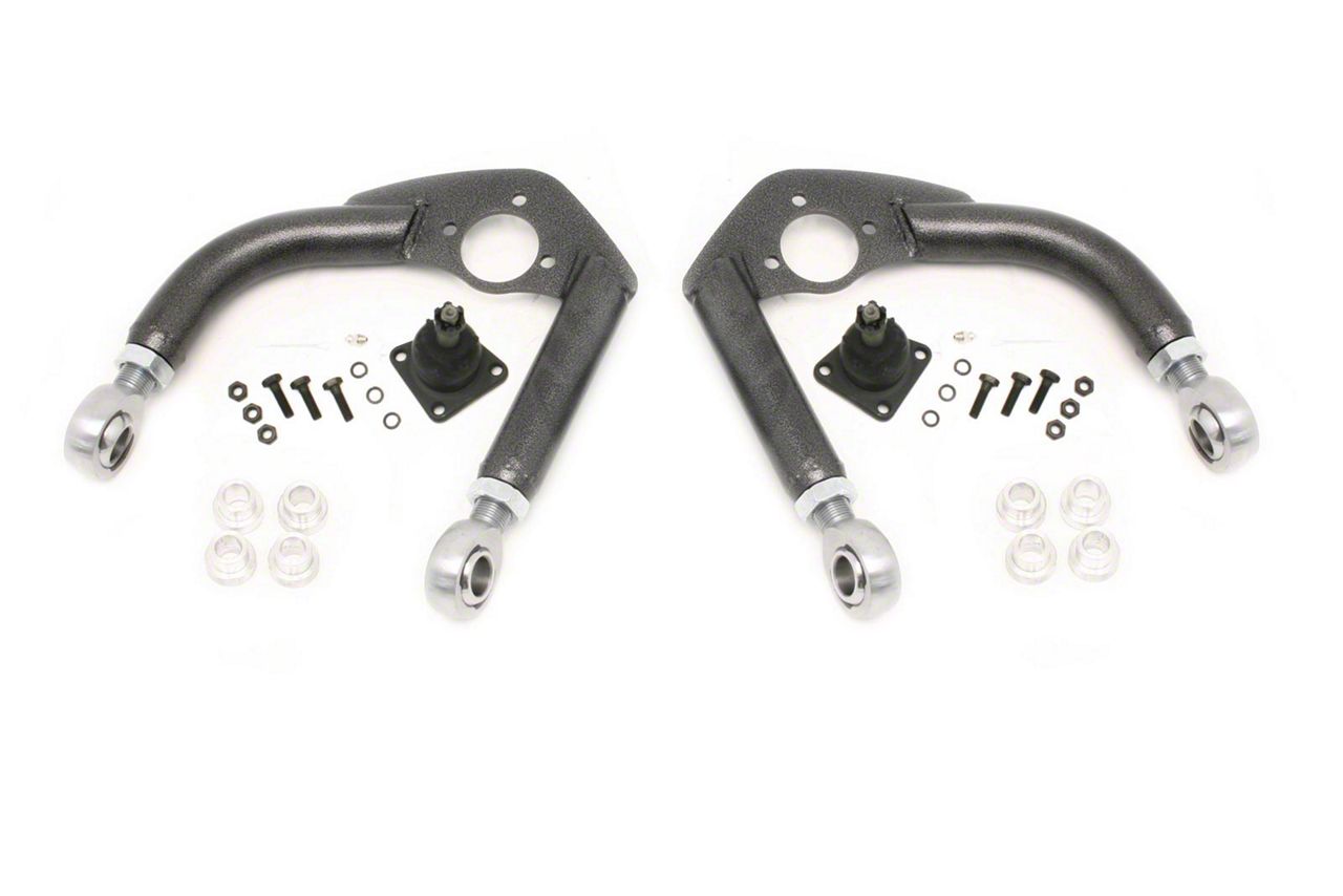 A-arms are one of the most important, yet overlooked suspension components. They are the direct link between the front wheels and the chassis. Any deflection causes a change in alignment, which results in poor performance and driving feel. Fabricated from heavy-duty 1.25-inch, 0.095-inch wall DOM tubing with laser-cut, CNC-formed plate steel plate, deflection is eliminated with A-arms from BMR Suspension. BMR?s AA004 Upper A-arms come with new upper ball joints and heavy-duty rod ends, which add a solid, more responsive feel over the stock rubber bushings. BMR?s uses zinc-plated, X-series, heat-treated, chrome-moly, self-lubricating, Teflon-lined rod ends, giving you the ultimate is strength and reliability.