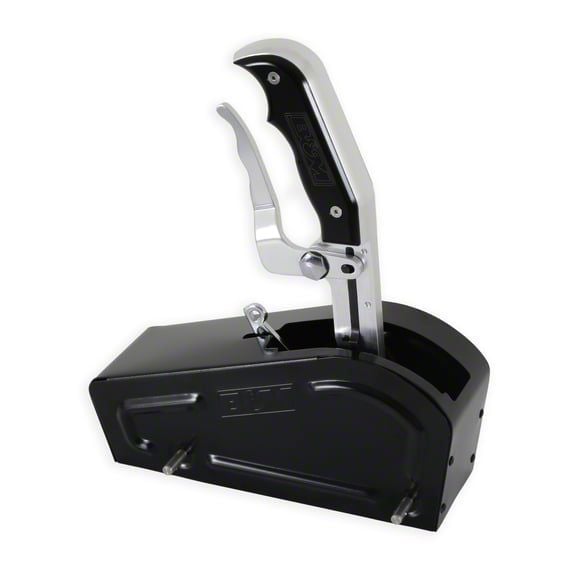 The Two-Tone Magnum Grip Pro Stick shifter delivers rock-solid performance, mixed with clean design cues and compact size. This is why you see so many Pro Stick shifters at the race track. We start off with a heavyduty steel base with a hardened steel gate plate, a reverse lockout feature that only requires one hand to operate and complies with NHRA/IHRA safety rules. Then add a unique anodized two-tone billet aluminum Magnum Grip shift handle with black replaceable side grip plates, matching aluminum trigger, and finish it off with a black anodized aluminum cover with quick release pins. You end up with one good looking bullet-proof race shifter. This model Pro Stick comes out of the box ready for action for the popular GM Powerglide 2-speed transmissions, includes a 5-foot Super Duty shift cable, brackets, levers, hardware, and detailed instructions for an easy installation. Overall Dimensions - 8.25L x 2.92W x 10.75H