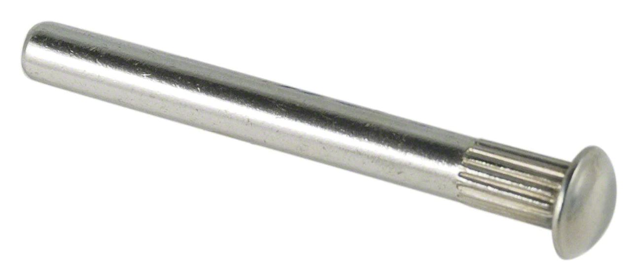 Stainless Steel Hinge Pin. This hinge pin is designed to provide a durable and reliable pivot point for vehicle doors, ensuring smooth door operation and supporting proper alignment of the door assembly. It is an essential replacement part for maintaining or restoring the functionality of classic Ford car and truck doors.