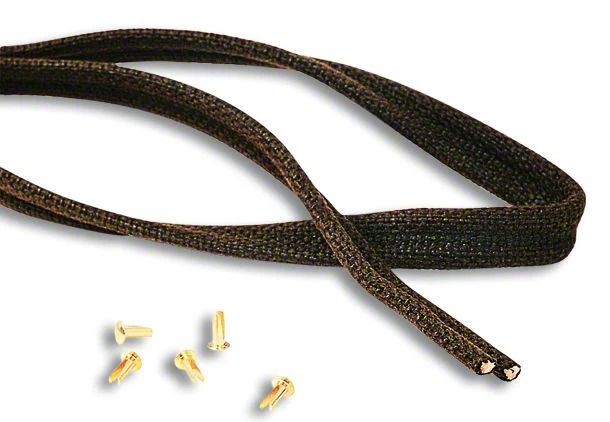 Construction and Appearance. Crafted from fabric that matches the original material, this lace includes 22 rivets as part of the assembly. The component measures 5/8 inch wide and 3/16 inch thick, with a length of 5 feet. Made in the USA, it ensures quality and adherence to original specifications.