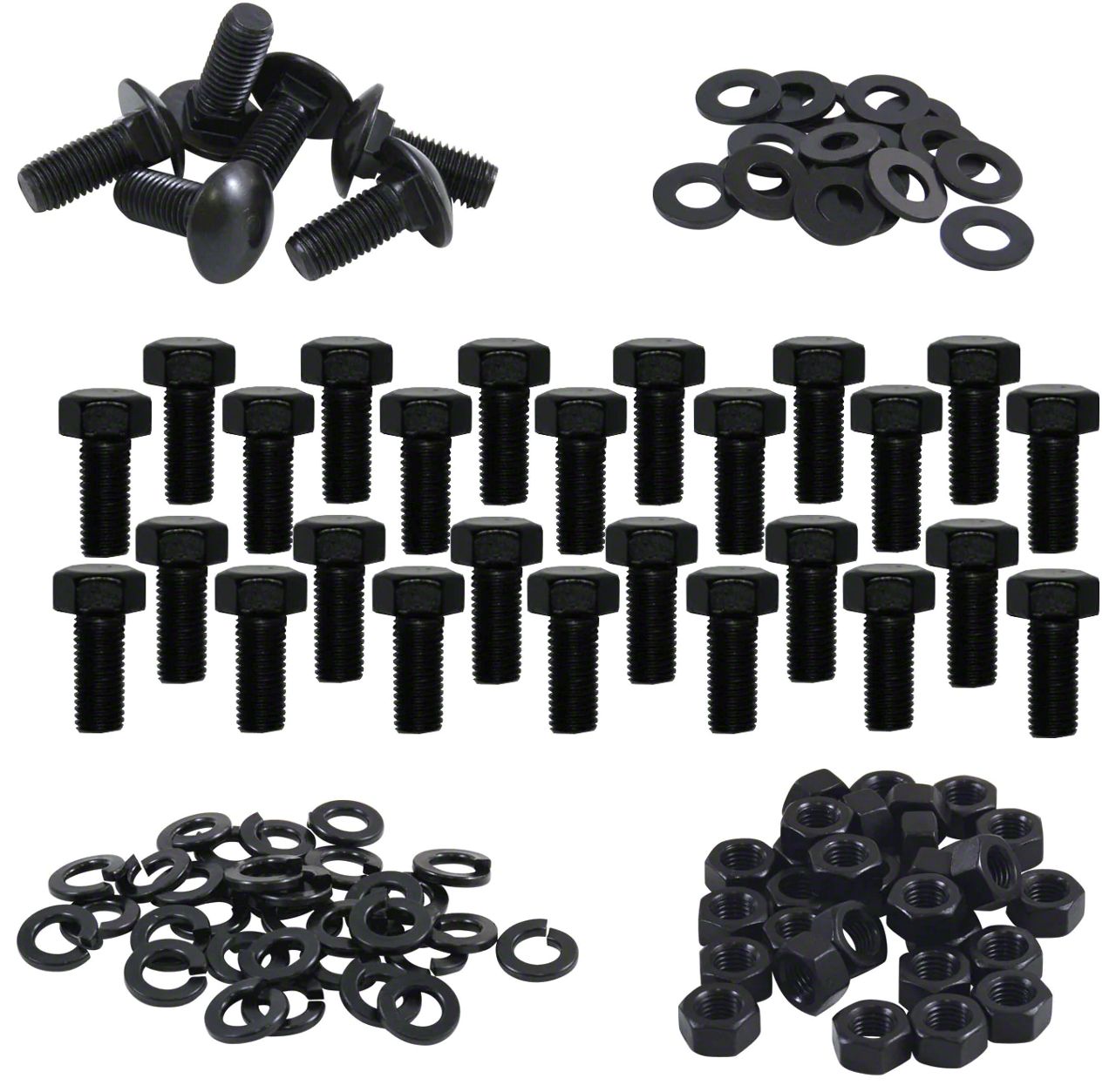 We didn’t simply pick these bolts up at the local hardware store, but diligently measured the Ford originals to produce the same tall headed bolts Henry supplied on his own cars. We even went beyond Ford specifications and made all the hardware grade 5 (without head markings), ensuring your running boards will remain tightly held to the car over years of stepping, jostling and bumpy roads without a single break. With all the correct hardware you need to mount your running boards to both frame and fenders, and detailed instructions to help you keep it just as Ford intended, this kit is a must for any 1935-36 restoration. 112 piece kit.