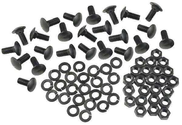 We didn’t simply pick these bolts up at the local hardware store, but diligently measured the Ford originals to produce the same tall headed bolts Henry supplied on his own cars. We even went beyond Ford specifications and made all the hardware grade 5 (without head markings), ensuring your running boards will remain tightly held to the car over years of stepping, jostling and bumpy roads without a single break. With all the correct hardware you need to mount your running boards to both frame and fenders, and detailed instructions to help you keep it just as Ford intended, this kit is a must for any 1932 restoration. 110 piece kit.