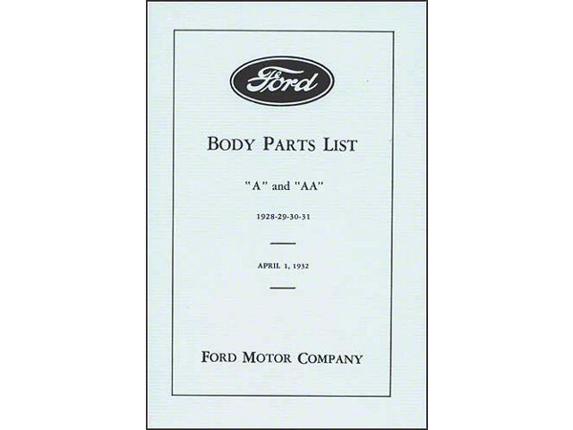 A complete list including passenger, commercial and dump truck information. It also has listings for body glass and photographs of each Model A body style.