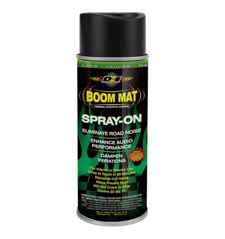 Boom Mat Spray-On sound deadening is perfect for reducing unwanted road noise and deadening vibrations in those hard to reach places such as trunk interiors, fender wells, undercarriage, body panels, rear quarters and inside door panels to name a few. Boom Mat Spray-On also serves as a thermal barrier insulating against unwanted heat. Whether you are looking for a quiet ride by eliminating squeaks, rattles, vibrations and unwanted