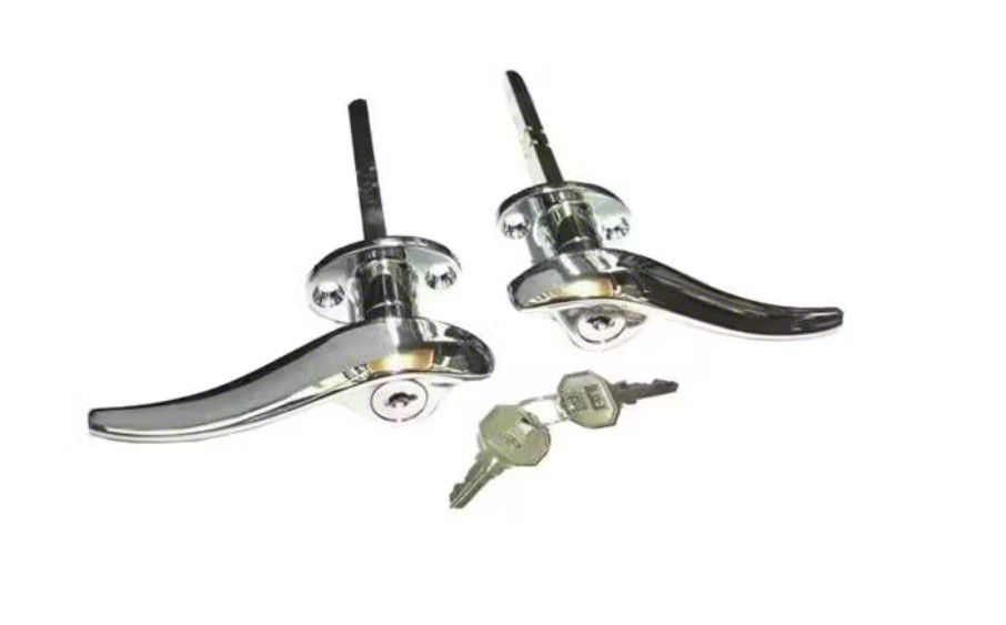 Classic Restoration Exterior. The Bous Performance Outside Locking Door Handles with Keys; Chrome provide an authentic replacement for original exterior door handles on vintage vehicles. These handles enable secure locking of doors while enhancing the vehicle’s exterior with a classic chrome finish. They are essential for restoration projects preserving the original appearance and functionality of early 1930s Ford cars and trucks.