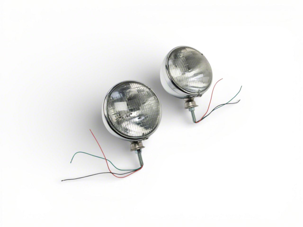Chrome Steel Dietz Style 7" Head Light Buckets w/ Sealed Beam W91231C Chrome housing 12 volt bulb with both high & low beam Sold as Pair Black Wire - Ground Red Wire - Low Beam Green Wire - High Beam