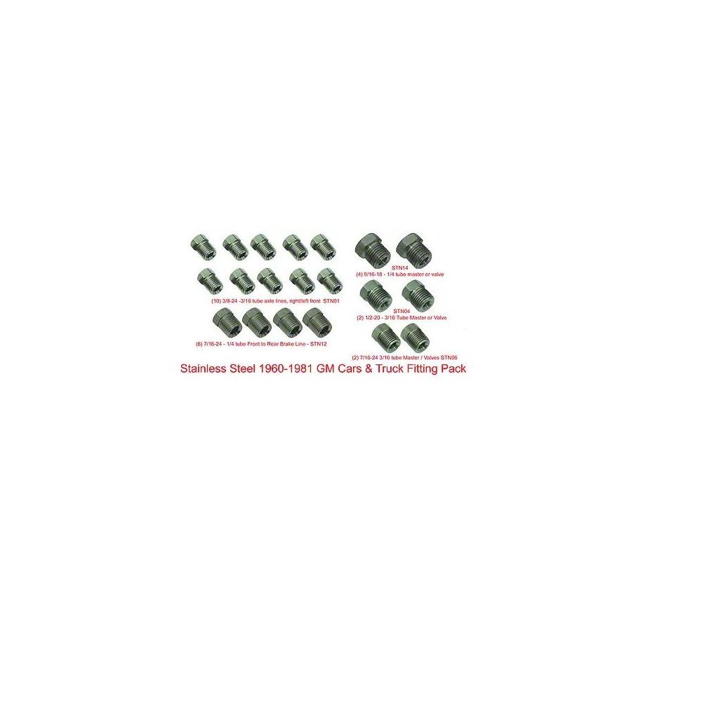 GM Fitting Pack brake line fitting kit. This can be used on just about any car, truck, hot rod, or custom applactions with 3/16" and 1/4" tubing.