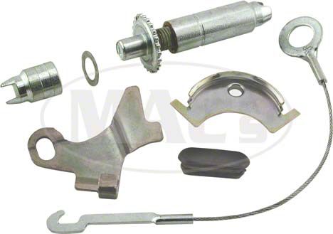 The kit contains 1 cable, 1 guide, 1 lever, brake shoe adjuster and hole plug. One kit does one wheel. It is for the left (driver) side only.