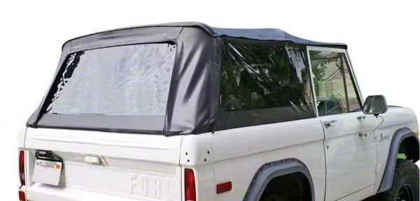 Replace your aging, worn out factory soft-top and gain some additional storage space inside the driving compartment. All the features of the original factory top with exclusive Rampage additions which includes two zippered storage pockets. Produced in original factory specifications and colors. The Rampage replacement top easily installs over factory framework, attaches to factory mounting points and original equipment belt rail attachment system. Also, with door skins that slip over the upper doorframes. Soft upper doors are included. Fits all factory applications. Available with either tinted or clear windows. For half door applications only.