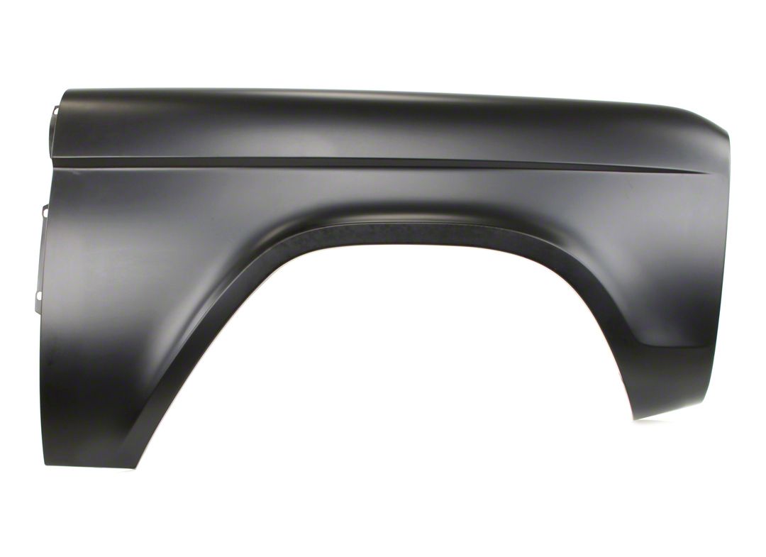 RH = passenger sideReproduction front fender for the 67-77 Ford Bronco. Made like OE. Each fender is stamped from heavy gauge steel and features the correct shape, size, bends, holes and curves. EDP coated to help protect against rust and corrosion.Replaces Ford part# D0BZ-16005-A, D7TZ-16005-ALooking to replace the front fender on your 1967-1977 Ford Bronco? Look no further than this Front Fender. This high-quality auto body part is designed to fit perfectly on your Bronco, ensuring a seamless restoration process.Constructed from durable materials, this Front Fender is designed to be long-lasting and withstand the elements. It is an exact reproduction of the original Ford part, so you can be sure it will fit and function just as it should.Replacing a damaged or rusted front fender on your 1967-1977 Ford Bronco is an important step in restoring its original beauty and functionality. This Front Fender is the perfect choice for anyone looking to complete a full restoration or repair on their classic Bronco.Restoring a classic vehicle like a 1967-1977 Ford Bronco requires attention to detail and the use of high-quality auto body parts. This Front Fender is the perfect addition to your restoration project. It will help ensure that your Bronco looks and performs just like it did when it first rolled off the assembly line.If you're looking to replace the front fender on your 1967-1977 Ford Bronco, this Front Fender is an excellent choice. It is designed to fit perfectly and is an exact reproduction of the original Ford part. Plus, it will help ensure that your Bronco looks great for years to come.In summary, if you're restoring a 1967-1977 Ford Bronco and need to replace the front fender, this Front Fender is the perfect choice. It is designed to fit perfectly and is an exact reproduction of the original Ford part, ensuring a seamless installation process. Plus, it will help ensure that your Bronco looks and performs just like it did when it first rolled off the assembly line.