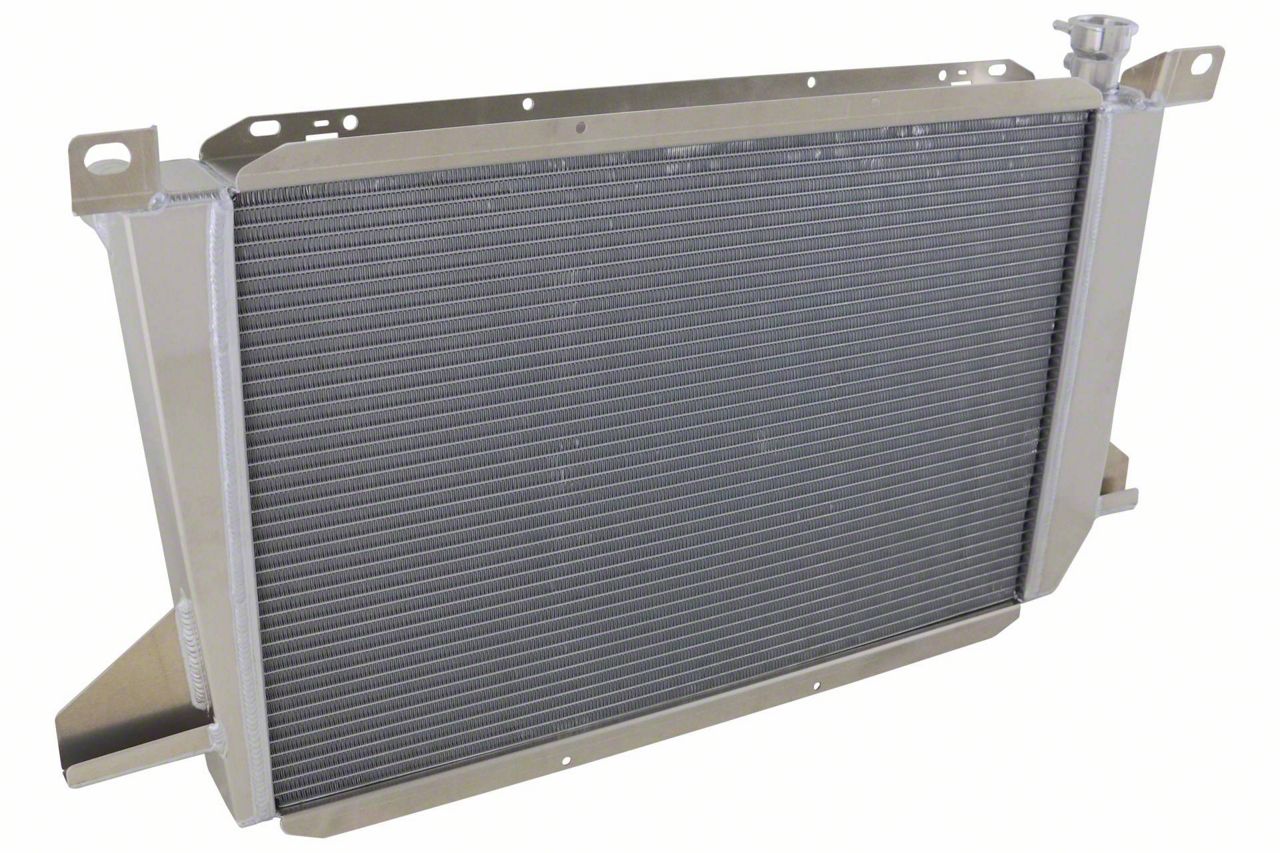 A true high performance radiator built right here in the USA! This radiator is built with 2 rows of 1.25" tubes, making it the same thickess as a 5 row copper/brass radiator but will perform like a 6 row. Since this unit is built for application with a manual transmission, there is not transmission cooler in this radiator. The core is fully brazed and contain NO Epoxy. Super high efficiency fin design with a louver count on each fin exceeding other cores in the market.