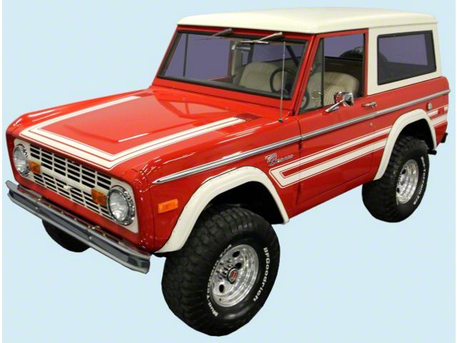 1976 Ford Bronco Explorer stripe is an exact factory OEM correct reproduction. Factory correct and specific to the 1976 it is offered in correct OEM colors. We manufacture these kits with High Performance, Automotive Grade, 2ml, Cast Vinyl. The best avail