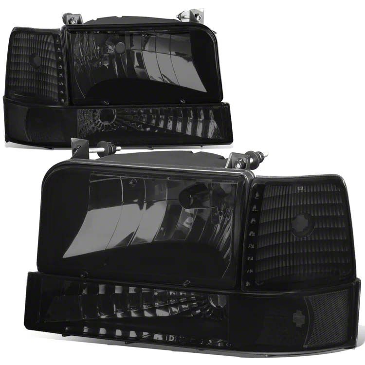 Factory Style Headlights with Amber Corners; Black Housing; Smoked Lens (92-96 Bronco)Find parts that fit my vehicle