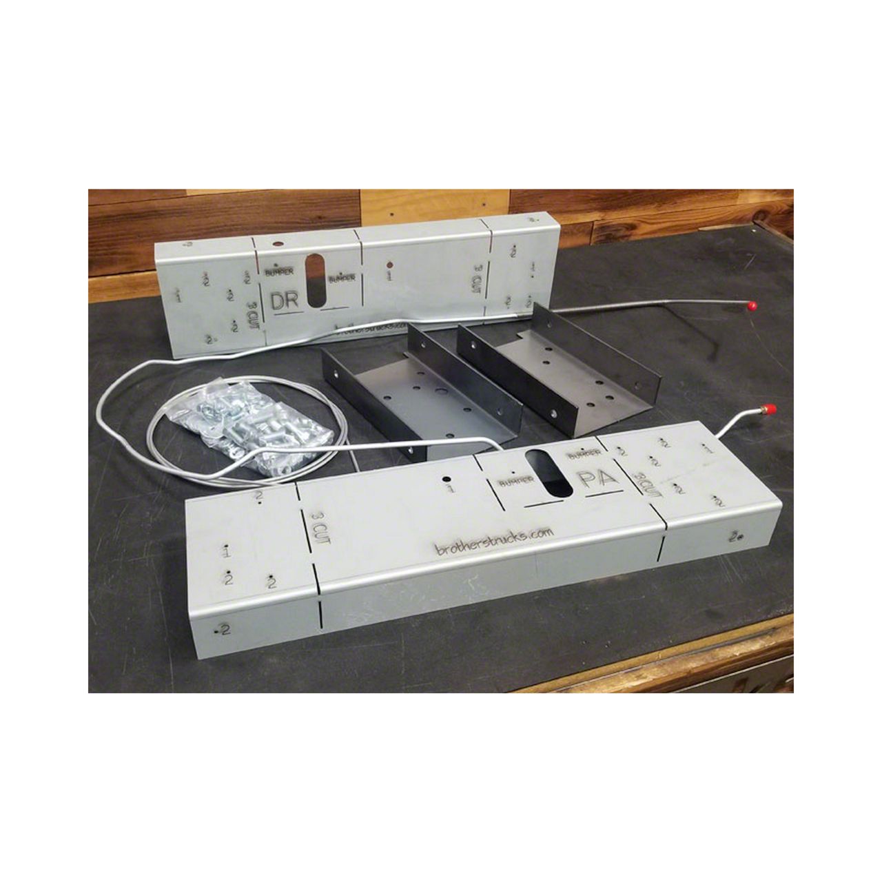 Brothers is proud to announce the release of our highly anticipated long bed to short bed conversion kit. This kit will take all the confusion out of this conversion and will provide you with all the necessary provisions to complete this popular conversion. The kit includes a laser-etched steel template, a high strength steel inner C-channel brace, a new short bed front-to-rear brake line, new short bed parking brake cables and all necessary hardware to install the kit, along with highly detailed instructions. By purchasing this conversion kit, you will have everything needed to shorten your long bed frame with basic hand tools in your own garage. Requires welding to finish the conversion but with our steel inner braces, you will be able to safely transport the vehicle to a certified welder - if needed. A short bed gas tank is required. The driveshaft will also have to be shortened before re-installation. Note: For 3/4 ton truck owners you will need to check your trucks GVW or GVWR on the door jamb tag. If your tag shows a GVW or GVWR of 8200 or more, DO NOT PROCEED. This kit WILL NOT work on your truck.