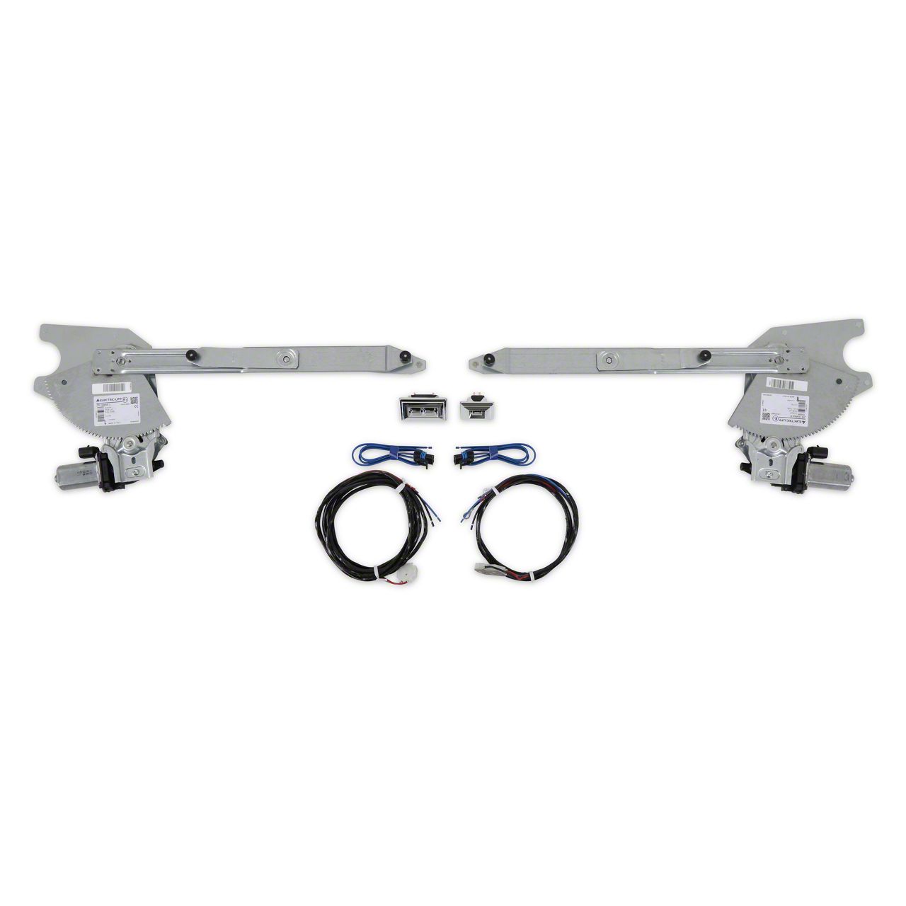 This is the best kit available for adding power windows to your custom truck! Constructed of 1018 cold-roll steel with brass oil-lite thrust bearings at pivot points for long lasting performance. Chrome switches and necessary wiring harness included. Each kit is model specific and use new motors. This is a true bolt-in kit and uses stock channels. LIFETIME WARRANTY! Note: power kit will work with both standard side window glass and one piece window conversions.