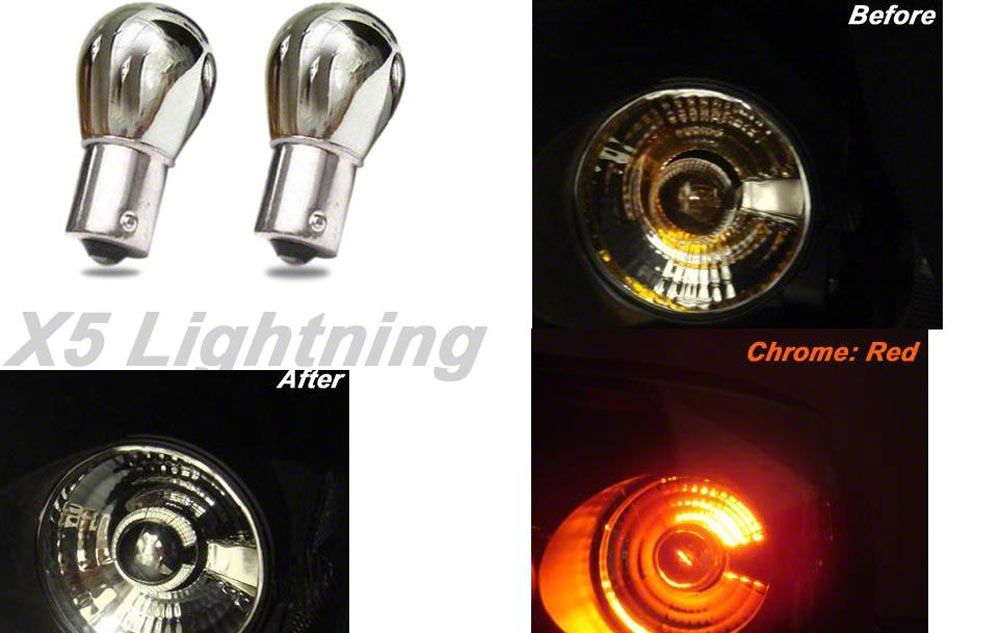 Silver (chrome) bulbs take away the ugly orange reflection seen from orange bulbs in crystal headlights and taillights, but still shine bright Red when illuminated allowing you to complete the clean look along with being 100% legal and requiring ZERO wiring
