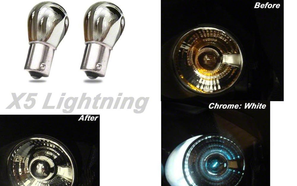Actually Color of our Light Chrome bulbs Silver (chrome) bulbs take away the ugly orange reflection seen from orange bulbs in crystal headlights and taillights, but still shine bright orange when illuminated allowing you to complete the clean look along with being 100% legal and requiring ZERO wiring modifications!