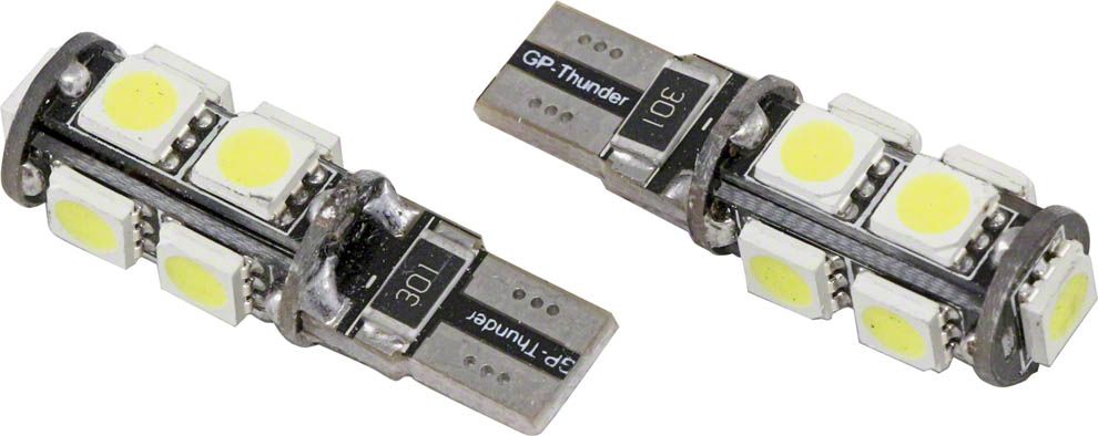 Brand New in the market! One Pair 194 White 9 5050 3 Chips SMD LED Light (2 bulbs) 194/168 12V 8 LEDs down layer for side light, 1 big LED upper layer(T10 Wedge) 5 Super Bright 5050 3 chip SMD LED Per White Bulb 180 Degree Wild View Angle Error Code Free For Side Marker Lights, Running Lights, Tag Lights, etc.
