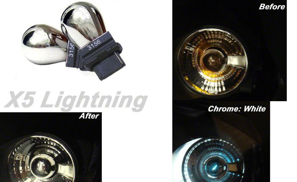 Actually Color of our Light Chrome bulbs Silver (chrome) bulbs take away the ugly orange reflection seen from orange bulbs in crystal headlights and taillights, but still shine bright orange when illuminated allowing you to complete the clean look along with being 100% legal and requiring ZERO wiring modifications!