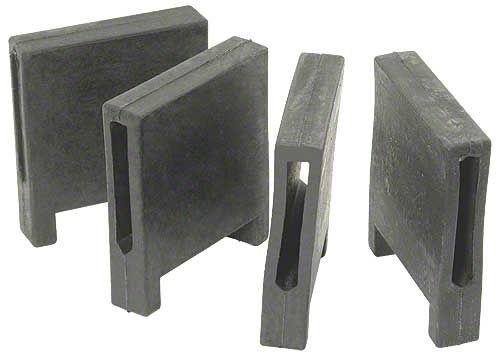 These slip over top of front bumper arms below splash pan to prevent metal-to-metal contact.