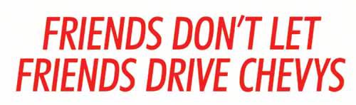 Bumper Sticker - Friends Don't Let Friends Drive Chevys