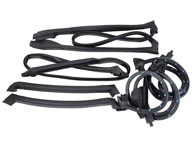 Installation. This kit installs as a direct replacement for the original seals and is designed to fit seamlessly into factory channels and mounting points. Although minor adjustments or adhesive may be required for certain components, the pre-molded rubber ensures a clean installation with minimal trimming. The kit does not include weatherstrips for the rear window, allowing for a focused upgrade to high-exposure areas.