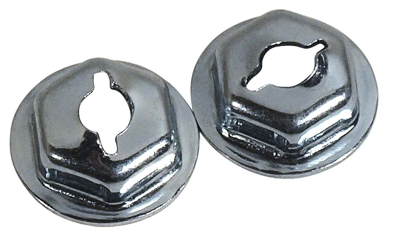 Construction and Features. Crafted from high-quality materials, this speednut kit includes two pieces with a raw metal finish. It is designed as a direct replacement, making it an ideal choice for restoring or replacing the emblem hardware on your Corvette. The speednuts are built to meet stock specifications, ensuring compatibility and durability for long-term use.