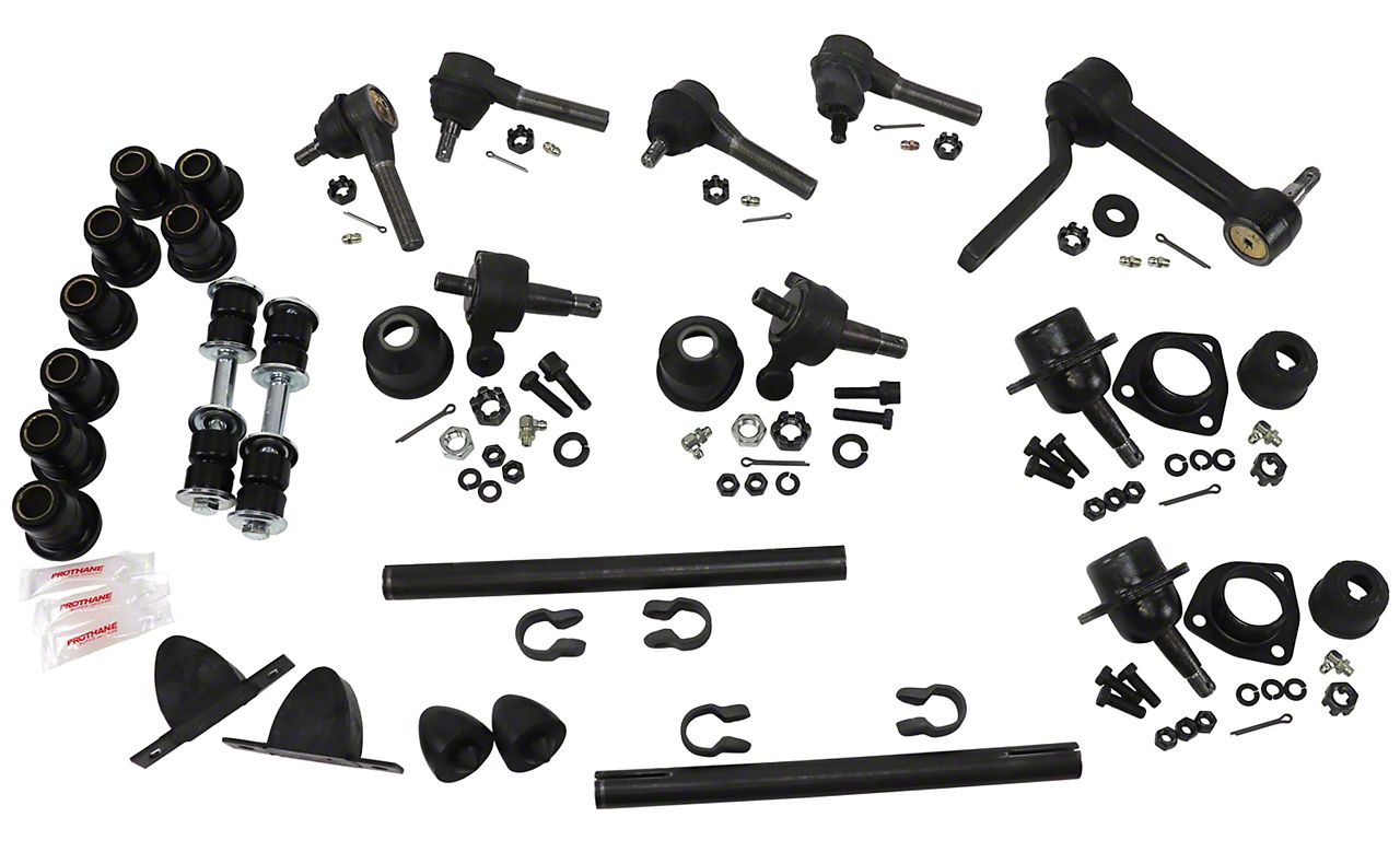 Construction and Appearance. Built with high-quality materials, the kit features durable components designed to meet or exceed OEM specifications. The deluxe construction includes poly bushings, which provide improved durability and responsiveness compared to traditional rubber bushings.