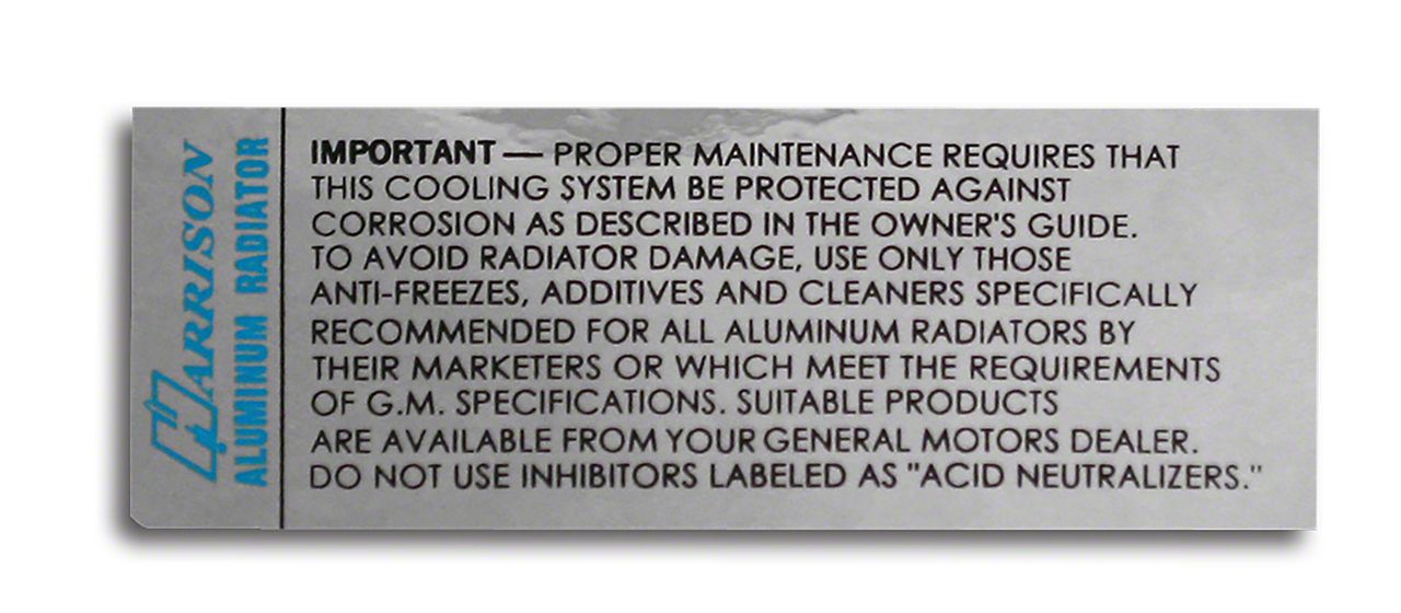 Authentic Restoration Detail. The CA Harrison Radiator Decal is a must-have for classic Chevrolet Corvette owners looking to restore their vehicle's original factory appearance. This decal adds an authentic touch to your engine bay while preserving the vintage aesthetic.