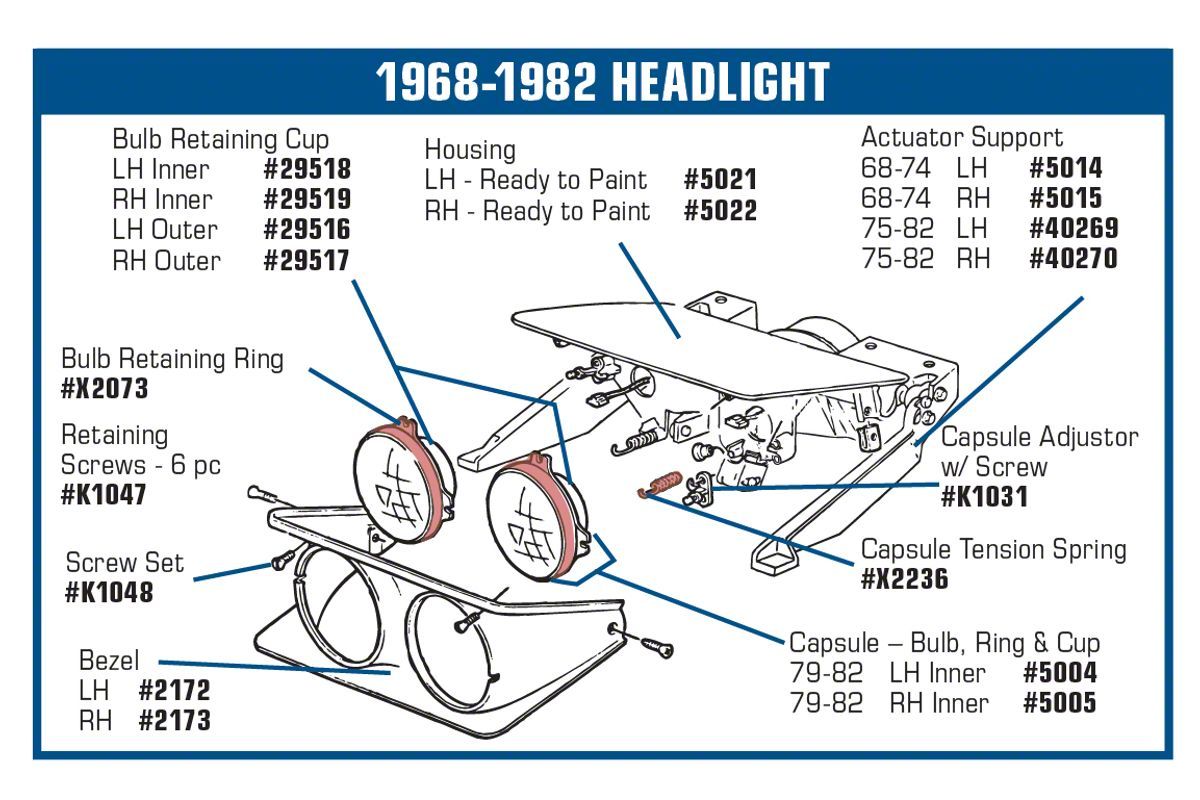 Application. This Headlight Capsule (Inner Passenger Side) fits the 1979–1982 Chevrolet Corvette C3.