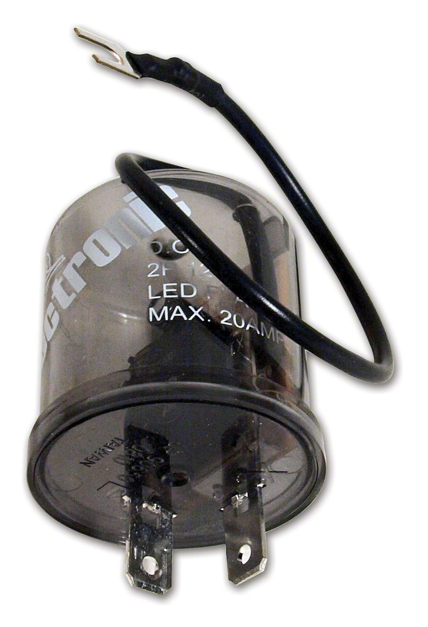 High-Capacity LED Flasher for Classic Corvette Models. The CA LED Flasher is designed to replace the original flasher in your Corvette, offering improved performance and compatibility with LED lights. With a glossy black finish and two terminals, this flasher has a maximum capacity of 20 amperes, providing reliable functionality for your vehicle's lighting system.
