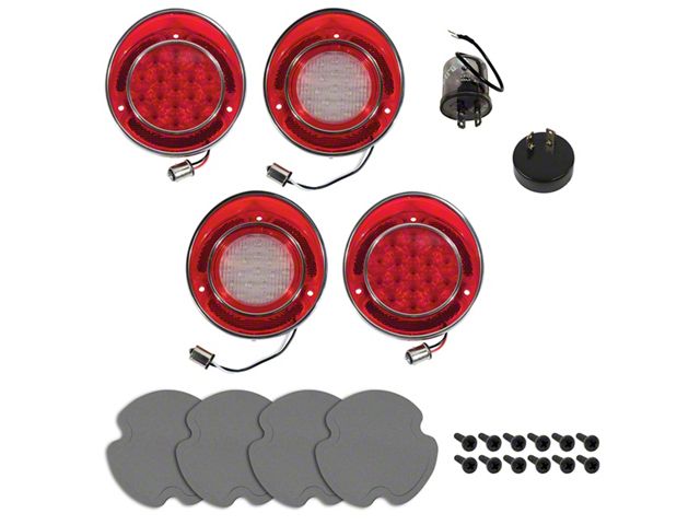 Construction and Appearance. Each light features a polished chrome finish housing paired with clear red lenses for an authentic, factory-inspired appearance. The included matte black finish gaskets and screws ensure a secure installation while blending seamlessly with the classic styling. Built to OE-compatible standards, the lights maintain both the look and performance of original components while offering the efficiency and longevity of LED lighting.