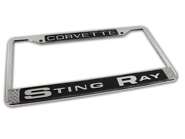 Stylish and Durable License Plate Frame. The Corvette License Plate Frame (Stingray Chrome) is designed to enhance your vehicle's appearance while offering durable protection for your license plate. This frame features a sleek chrome finish with the Stingray logo, providing a stylish touch to your Corvette while maintaining high-quality performance.