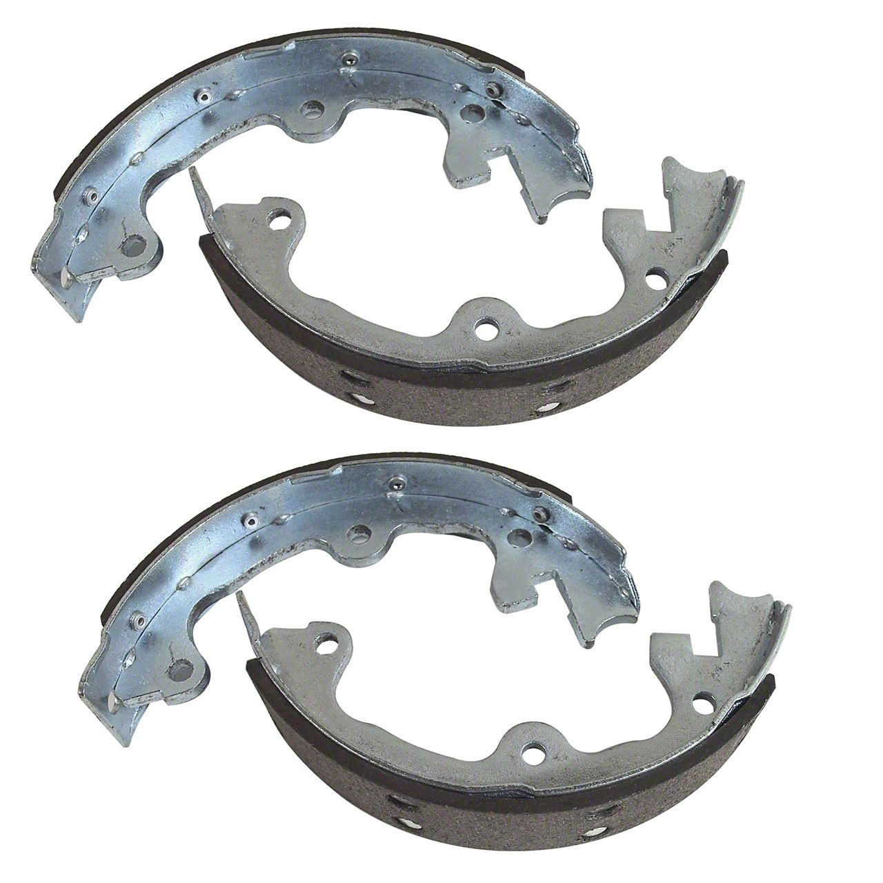 Effective Reproduction Brake Shoes. The Corvette Park Brake Shoes are designed to restore the effectiveness and reliability of your vehicle's parking brake system. Offered as a 4-piece set, these reproduction-style components ensure a perfect fit and maintain the original look and function of your classic Corvette. Furthermore, they serve as direct-fit, bolt-on restoration parts, guaranteeing seamless compatibility and high performance.