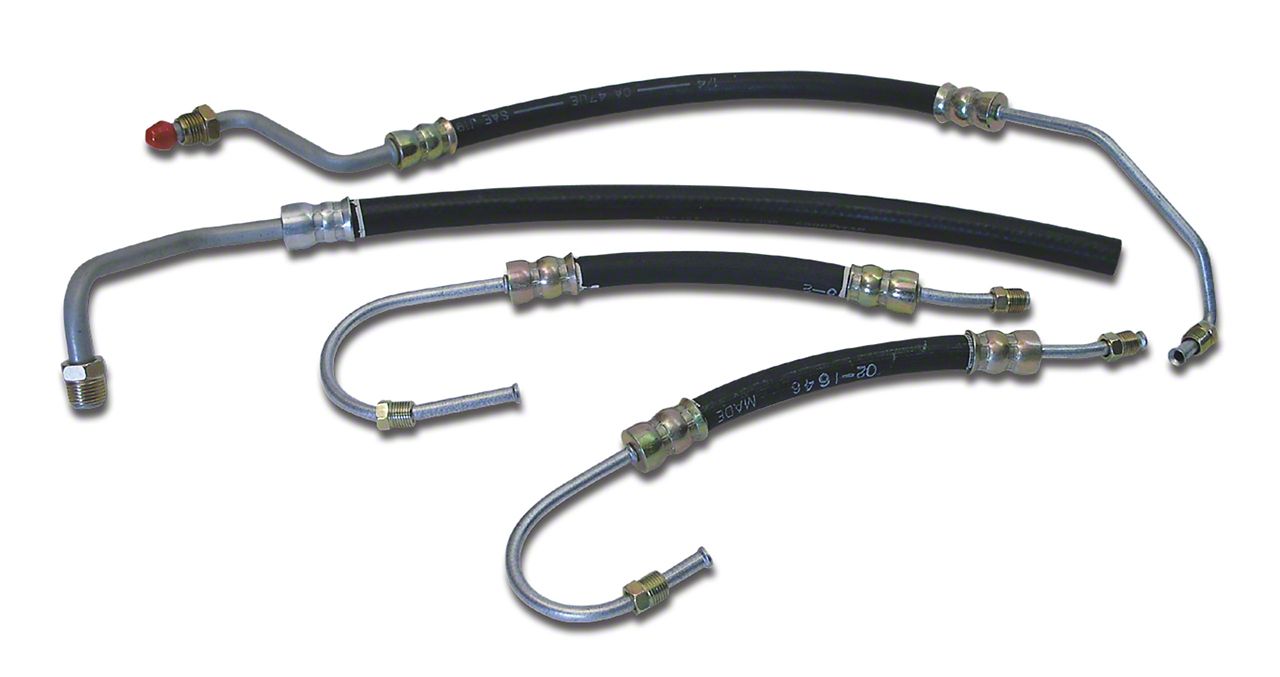 Construction and Appearance. The power steering hoses in this kit are constructed from premium-grade materials that ensure long-lasting durability and dependability. Compliant with SAE standards J188 and J189, these hoses feature a robust finish and superior craftsmanship, suitable for both restoration and daily use.