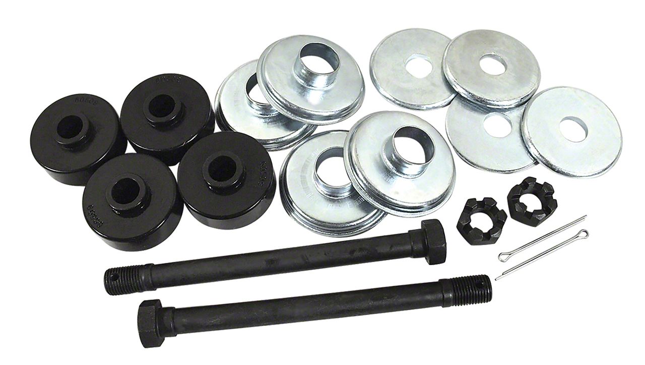 Reliable Restoration Component. The Corvette Rear Spring Hanger Kit with Poly Cushions (Stock Length) is designed to serve as a direct-fit and bolt-on solution for restoring your vehicle's rear suspension. Furthermore, this kit restores the pristine working condition of your Chevrolet Corvette while ensuring unparalleled performance and durability.
