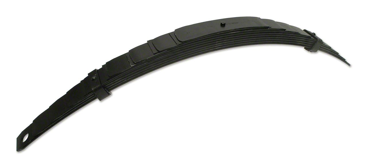 Construction and Appearance. This spring is built from premium-grade steel, featuring a black finish that ensures durability and long-lasting quality. Its 9-leaf design and 2.5-inch width follow original factory specifications, ensuring compatibility and authenticity.