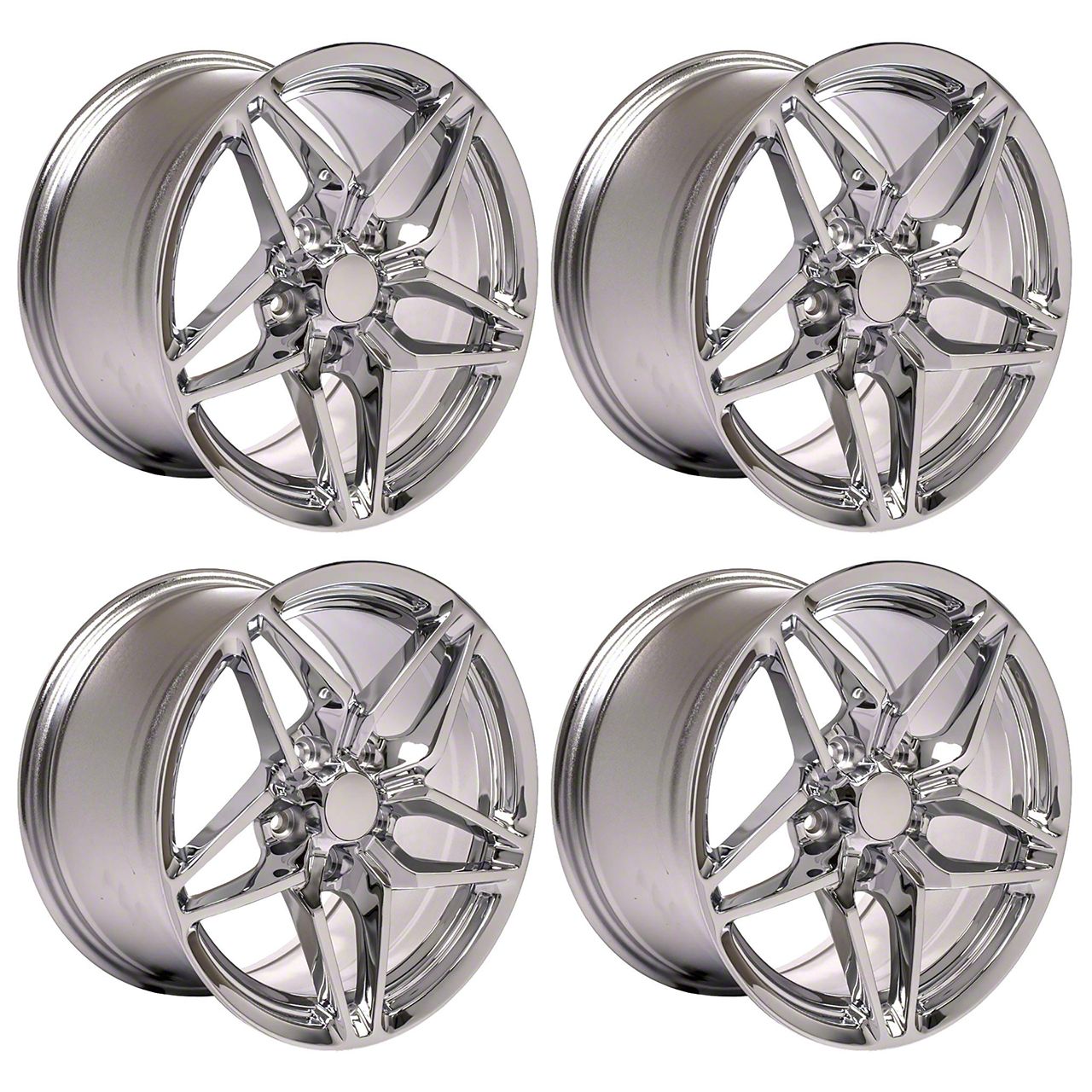 CA Staggered C7 ZR1 Style Chrome 4-Wheel Kit; 17x9.5/17x11; 56mm/50mm Offset. This CA Staggered C7 ZR1 Style Chrome 4-Wheel Kit; 17x9.5/17x11; 56mm/50mm Offset features a unique and stylish design, offering a blend of functionality and aesthetics. Its high-quality construction ensures durability and visual appeal, making it an excellent choice for vehicle customization.