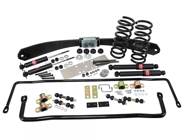 Construction And Appearance. This kit’s centerpiece is a composite fiberglass monospring, built from unidirectional fibers bonded with a high‑strength epoxy matrix. It features powder‑coated steel anti‑sway bars and coil springs, with durable gas shocks to dampen road imperfections. The finish is clean, corrosion‑resistant, and OEM‑spec.
