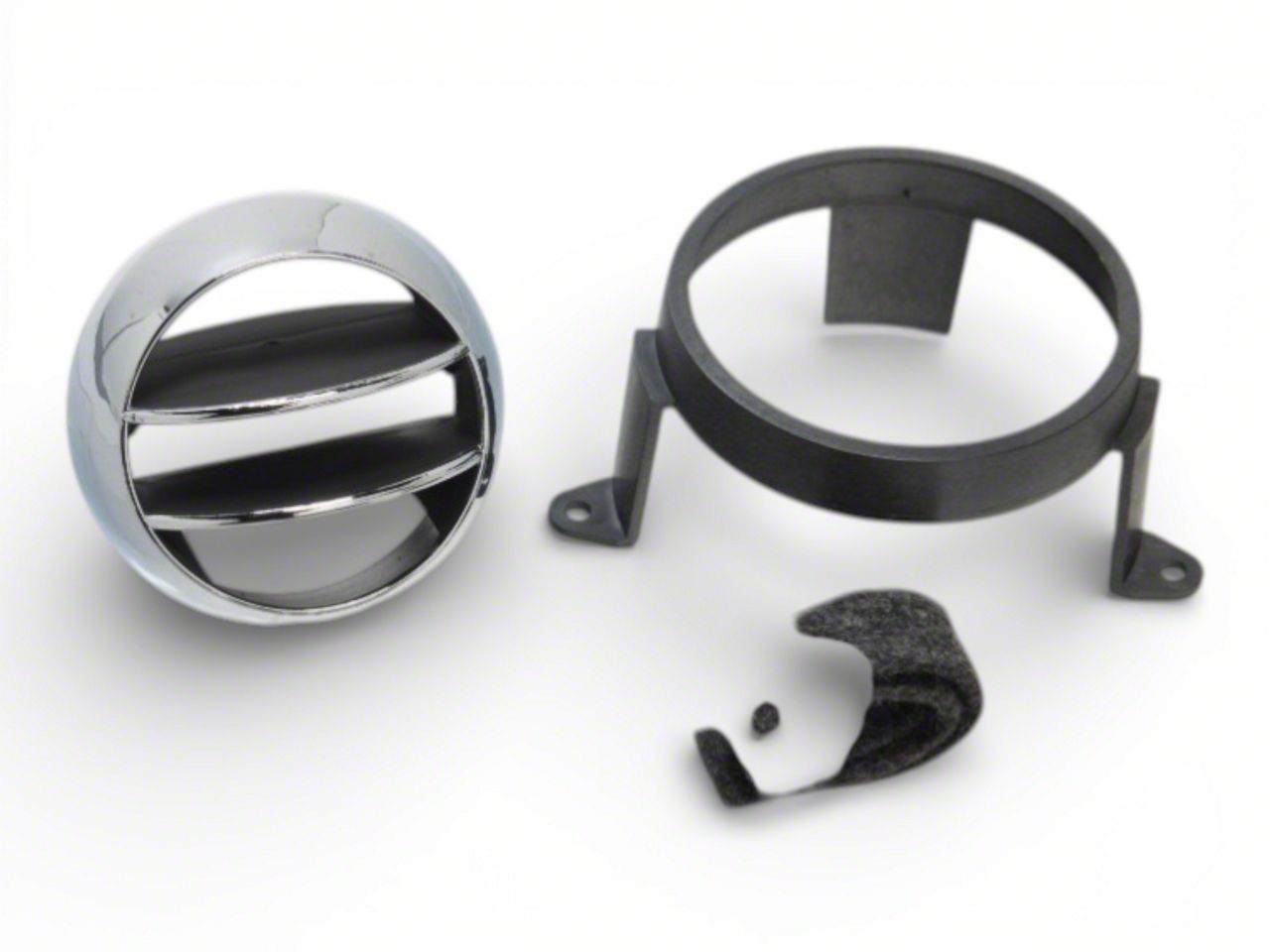 Construction and Appearance. Featuring a polished chrome finish, each component in the kit matches original factory styling and delivers a durable, eye-catching shine. The vent ball, retainer, and seals are built to OE specifications to ensure a precise fit and reliable performance within the dash ventilation system. Their sturdy construction resists wear from frequent adjustments and exposure to airflow.