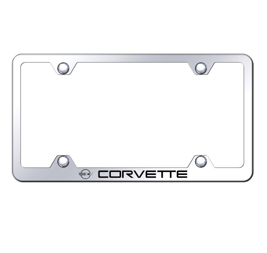 Wide Body License Plate Frame W/Laser Etched Logo - Mirrored Chrome