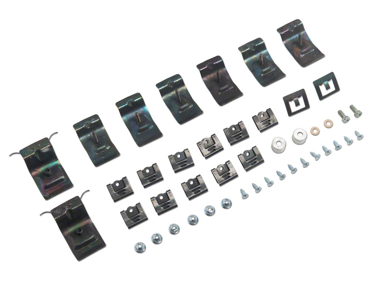 Construction and Appearance. Featuring a combination of raw metal and matte black finishes, the clips and screws are built for durability and corrosion resistance. Each component is manufactured to OE standards to match the original clip design, delivering dependable retention strength and long-lasting performance while maintaining a period-correct appearance.