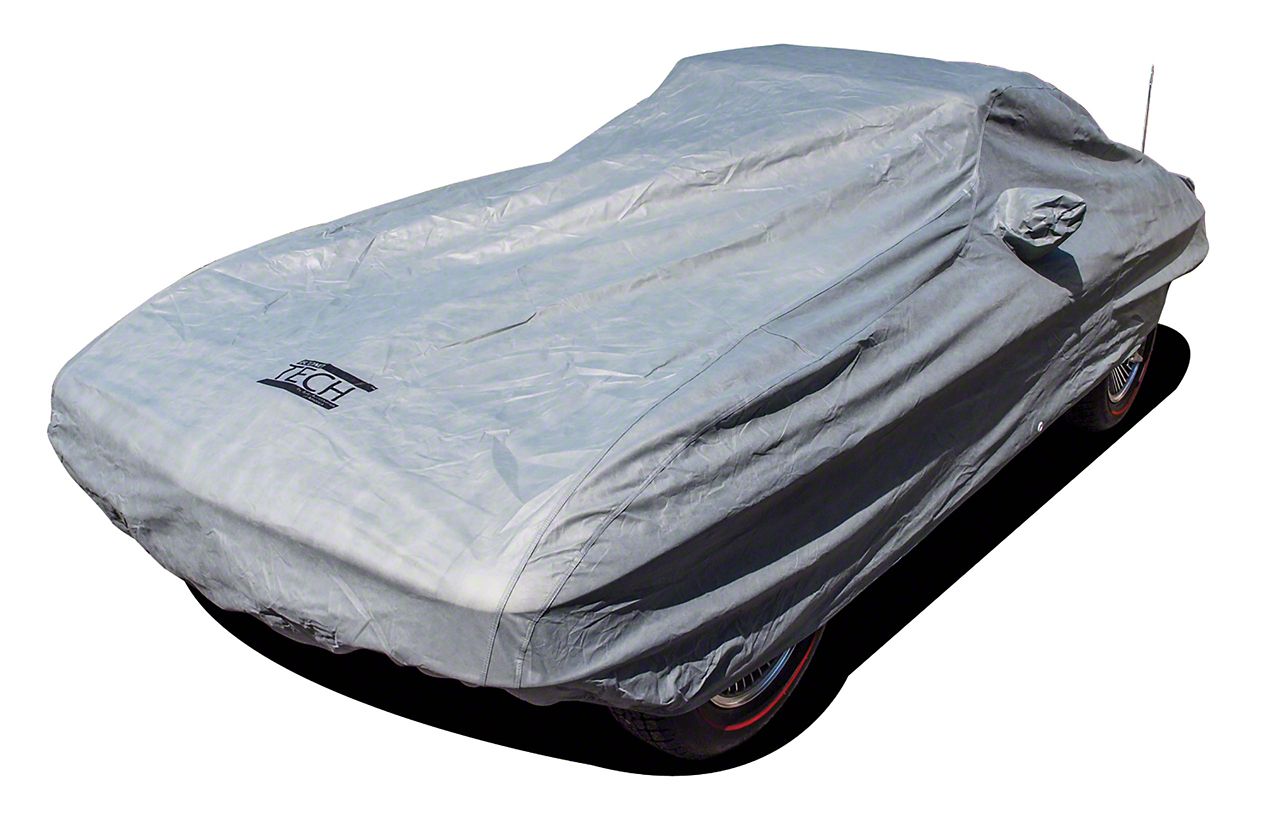 Protective Indoor Car Cover for Classic Corvette Models. The CA Econotech Car Cover is designed to provide effective protection for your Corvette while stored indoors. With a matte gray finish and a single-layer design, this car cover repels water and dirt, keeping your vehicle clean and shielded from potential damage.