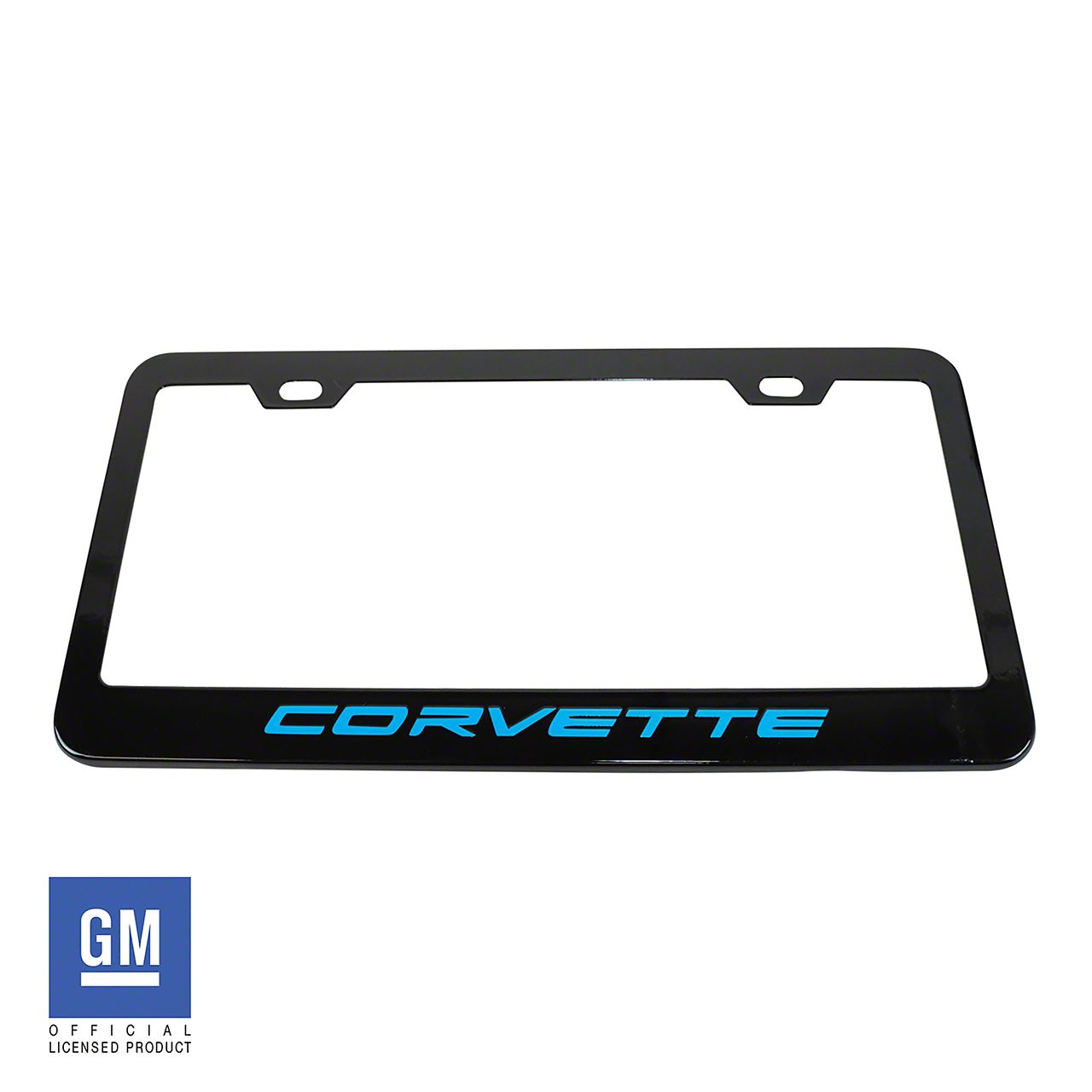 License Plate Frame with Rapid Blue Corvette Script; Matte Black (Universal; Some Adaptation May Be Required)