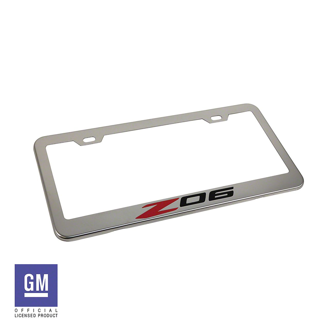License Plate Frame with Red and Black Z06 Logo; Polished Stainless Steel (Universal; Some Adaptation May Be Required)